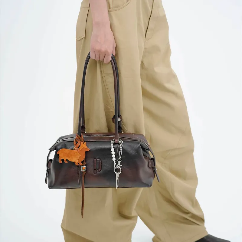 PECO 조커 컬렉션 Genuine 소가죽 롱 기장 핸들 숄더 백 여성 배색 - POIZON