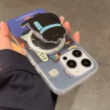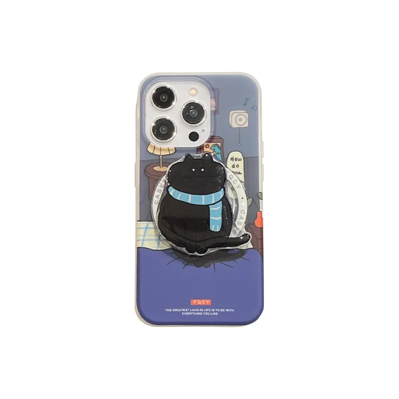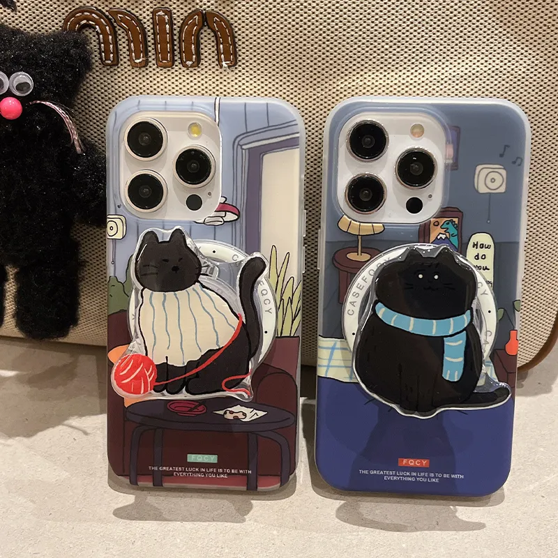 마그네틱 블루 소파 블랙 고양이 폰 케이스 + 블랙 고양이 폰 스탠드