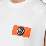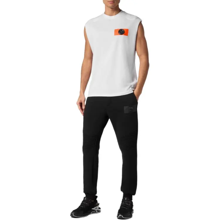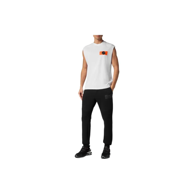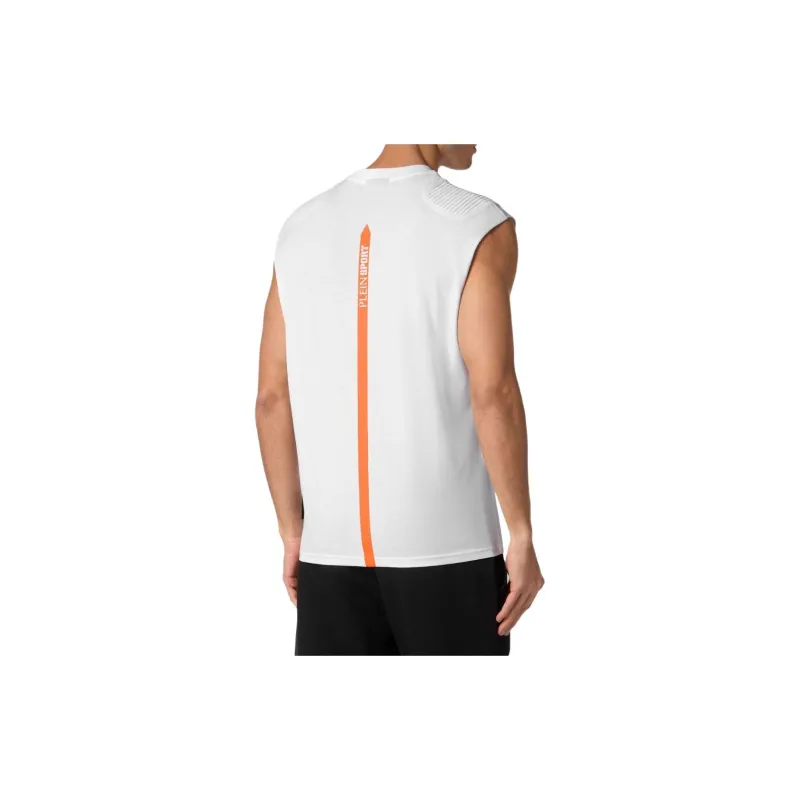 PLEIN SPORT 로고 아플리케 크루넥 민소매 티셔츠 남성 화이트
