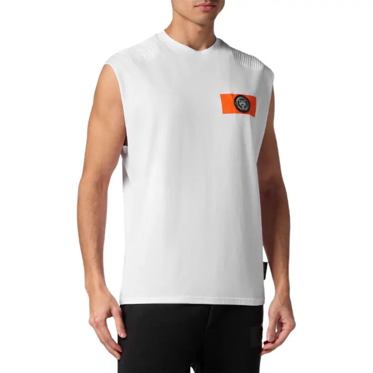 PLEIN SPORT 로고 아플리케 크루넥 민소매 티셔츠 남성 화이트 - POIZON