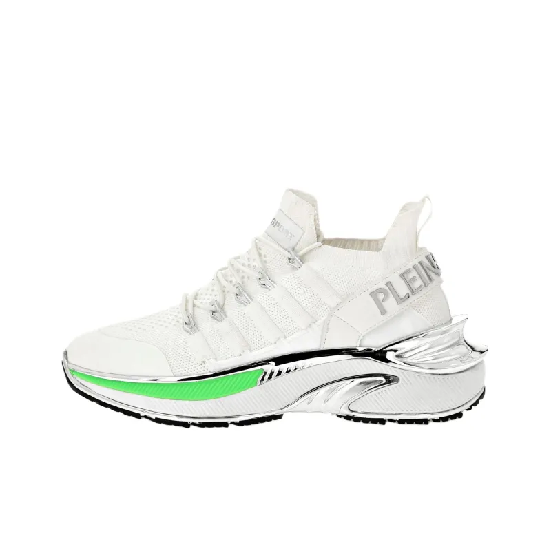 PLEIN SPORT 로우탑 캐주얼화 남녀공용 화이트/네온 그린 - POIZON