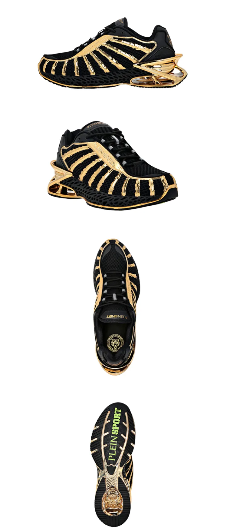PLEIN SPORT 로우탑 스포츠 캐주얼 신발 남녀공용 블랙 골드