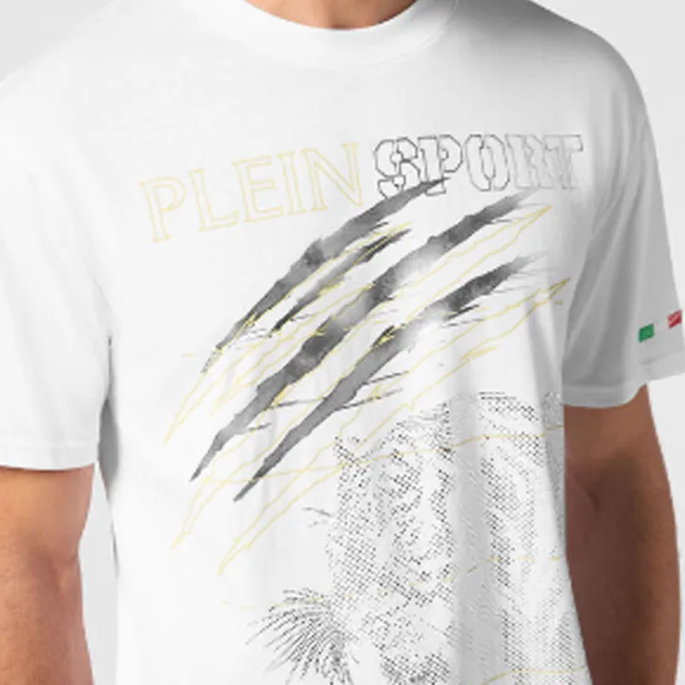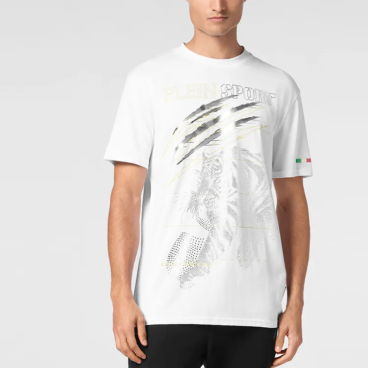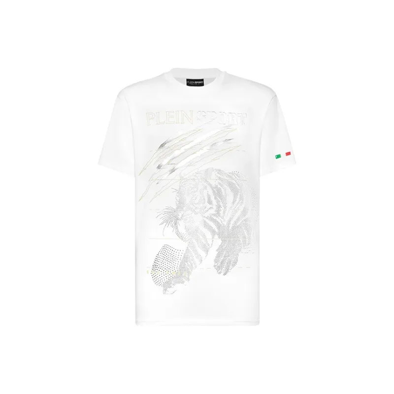PLEIN SPORT 화이트 실버 배색 남성 티셔츠 - POIZON
