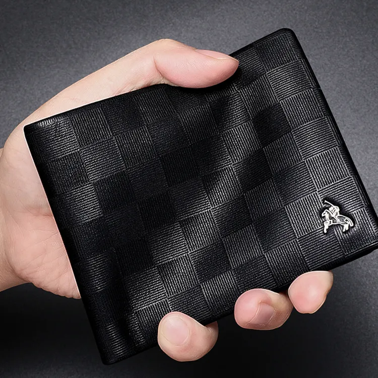 POLOMEISDO 체크무늬 풀그레인 소가죽 브랜드 지갑 멀티플 카드 슬롯 크롭 지갑 레귤러 남성 블랙 - POIZON
