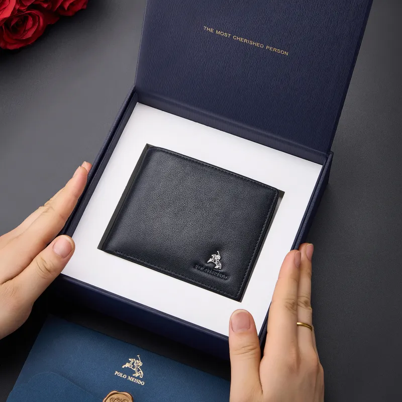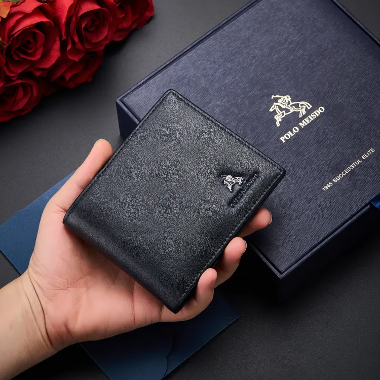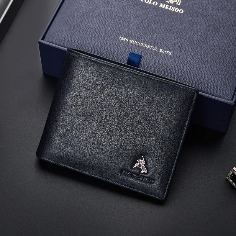 POLOMEISDO 풀그레인 소가죽, 천연 가죽 Boyfriend/Husband 남성용 지갑 레귤러 남성 다크 블루 - POIZON