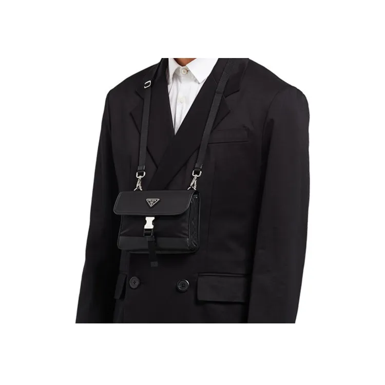 프라다 리나일론 앤 사피아노 레더 스마트폰 케이스 블랙 - POIZON