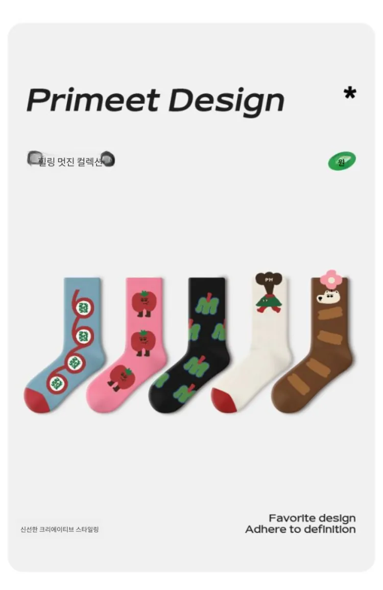 색상:카툰 크루 삭스 F 세트 - 5팩 세트