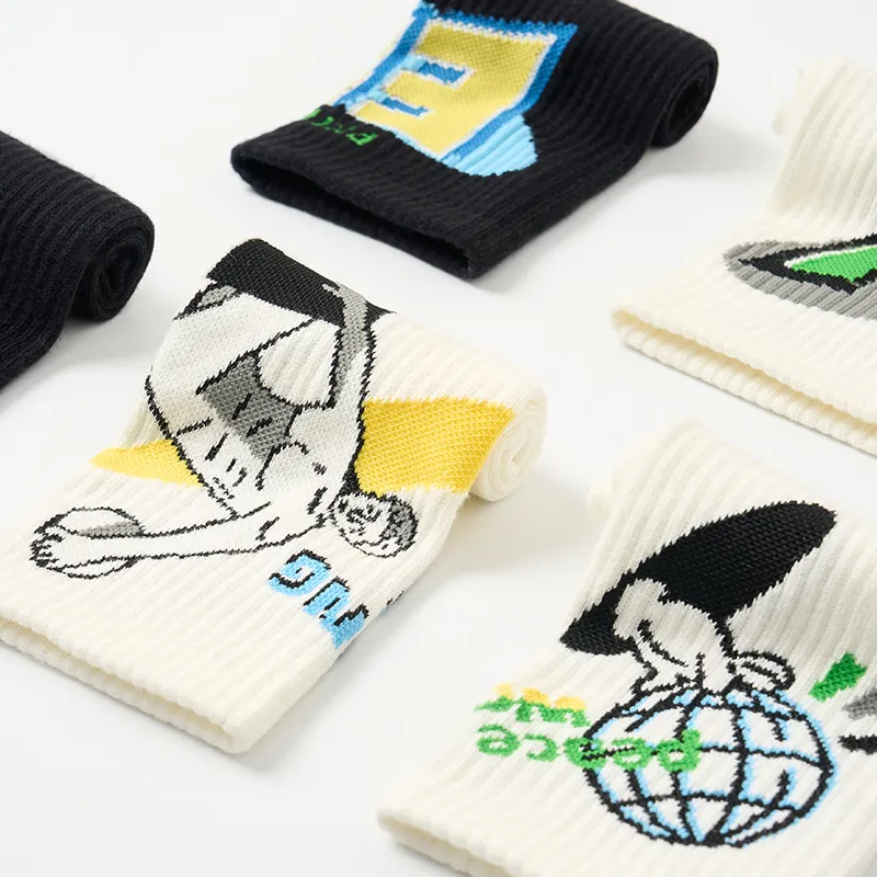 5-2팩 세트 (크루 삭스 삽화 트렌디 양말 E 세트)