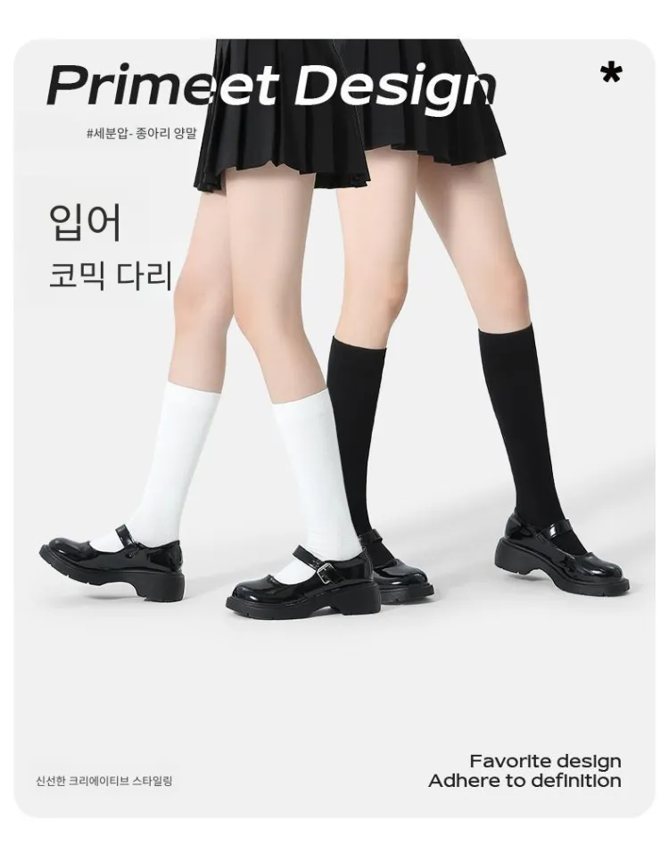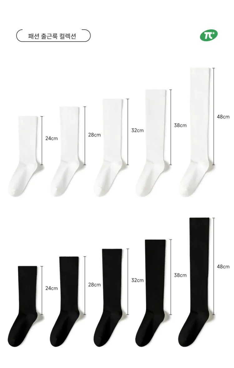 [High 컴프레션 종아리 양말 32CM] 화이트+블랙