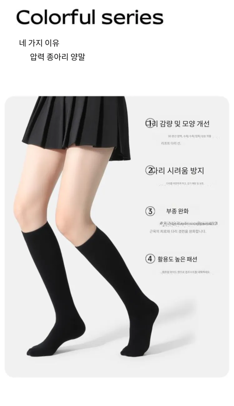 강력한 컴프레션 블랙 허벅지 양말 28CM