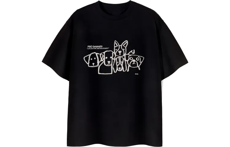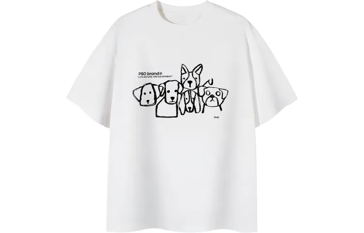 PSO Brand 강아지 시리즈 트렌디 브랜드 트렌디 드롭 숄더 상의 반팔 티셔츠 남녀공용 - POIZON