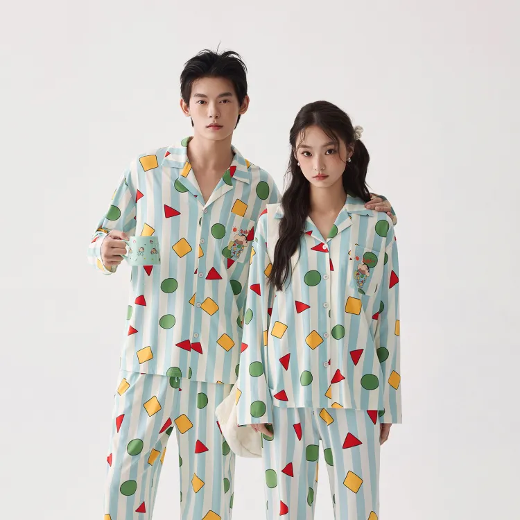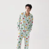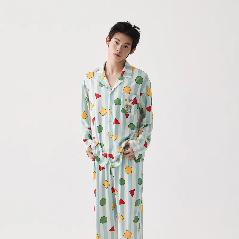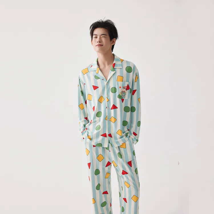 QINZUIMAO 3666 아쿠아 블루 남성 남성 파자마 세트 - POIZON
