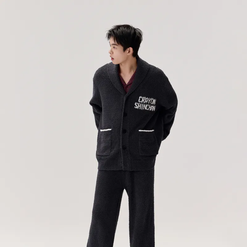 QINZUIMAO 9150 블랙 잉어 그레이 남성 남성 파자마 세트
