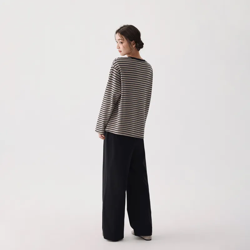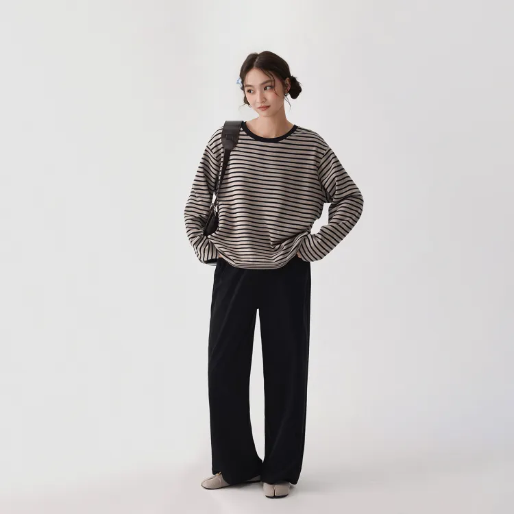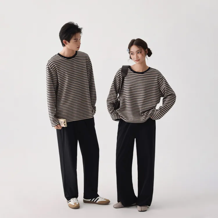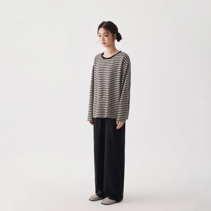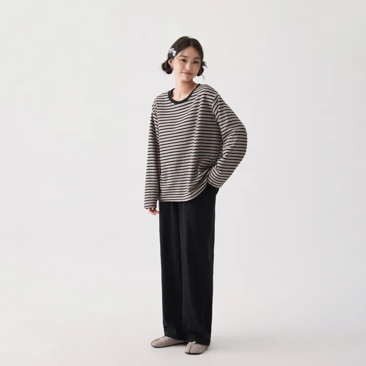 QINZUIMAO 스트라이프 패턴 여성 파자마 세트