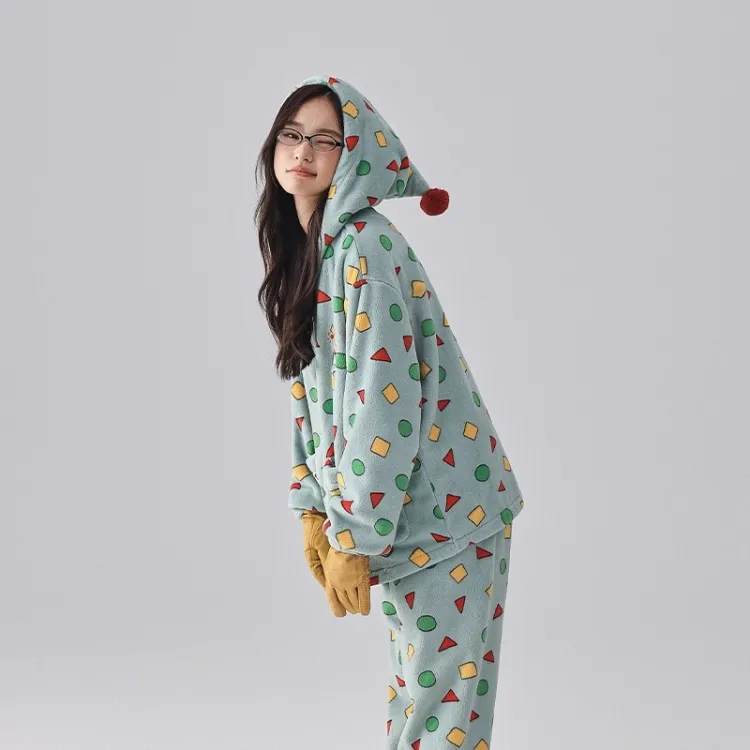 QINZUIMAO 4779 셀라돈 의류 세트 여성 파자마 세트