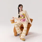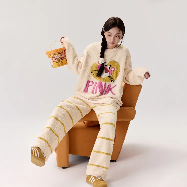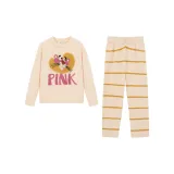 QINZUIMAO 베이지 옐로우 여성 파자마 세트