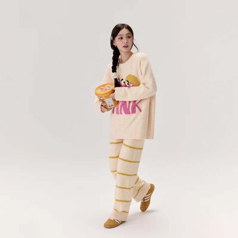 QINZUIMAO 베이지 옐로우 여성 파자마 세트 - POIZON