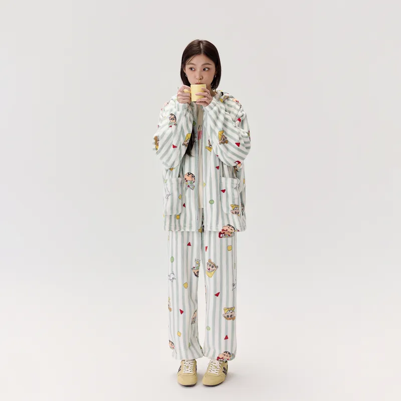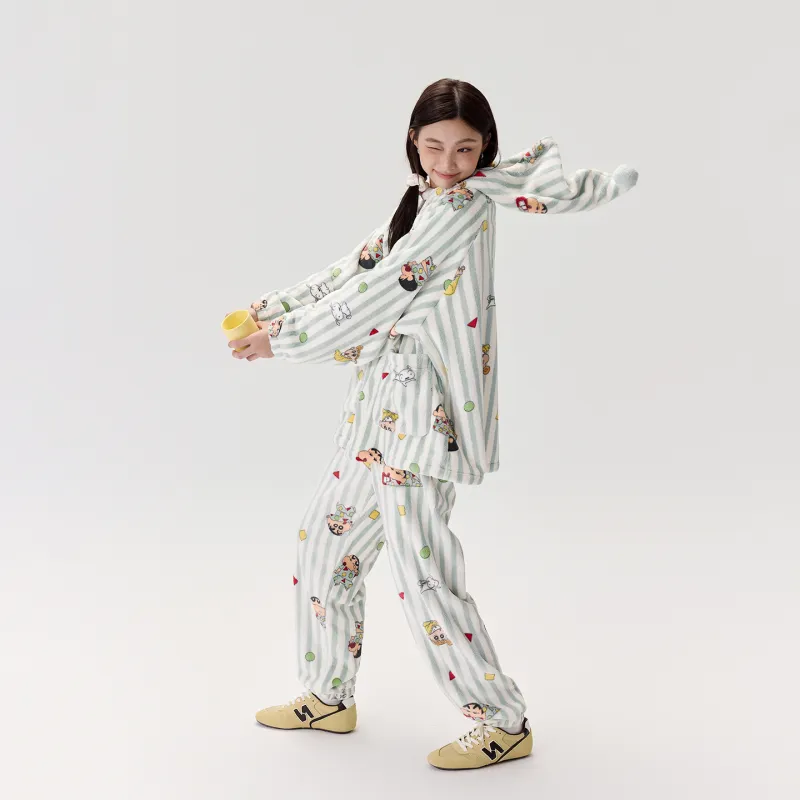 QINZUIMAO 미스티 스노우 블루 여성 파자마 세트