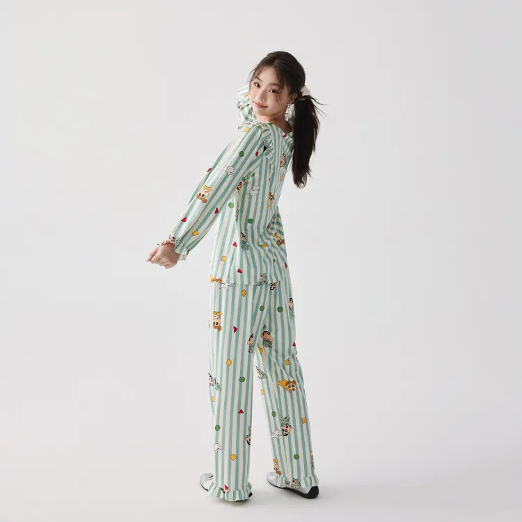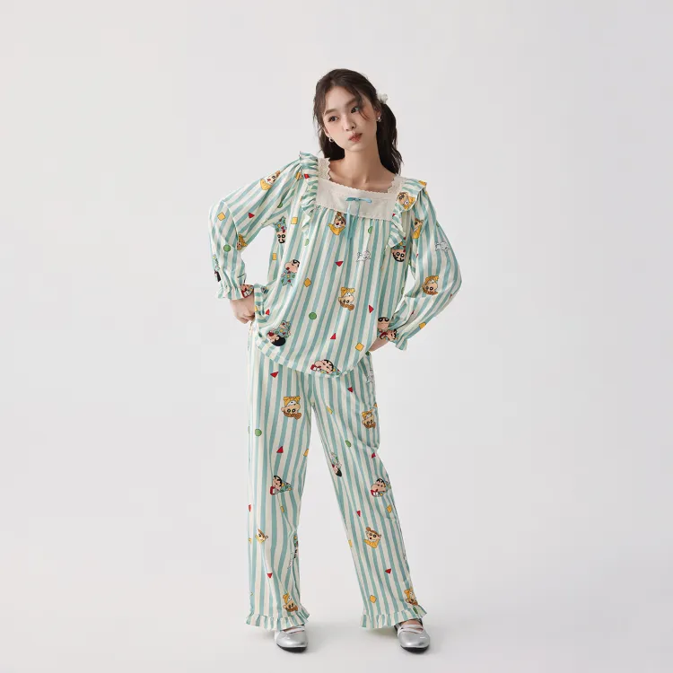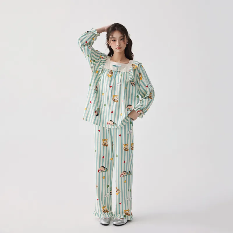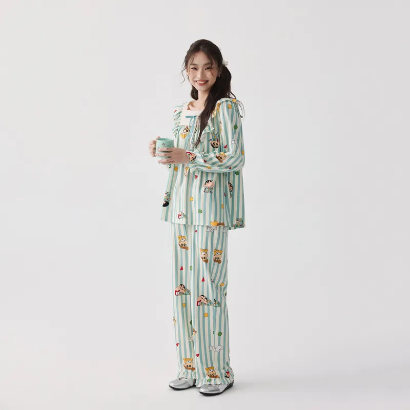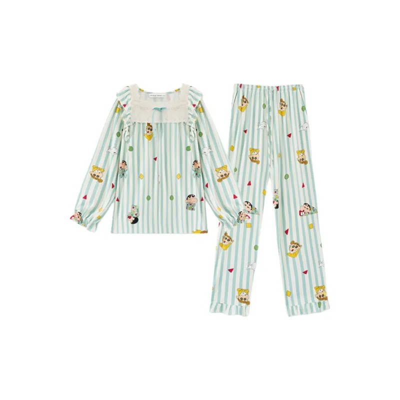 QINZUIMAO 일루전 블루 여성 파자마 세트