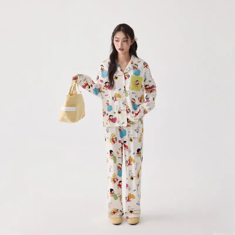 QINZUIMAO 밀크셰이크 화이트 여성 파자마 세트