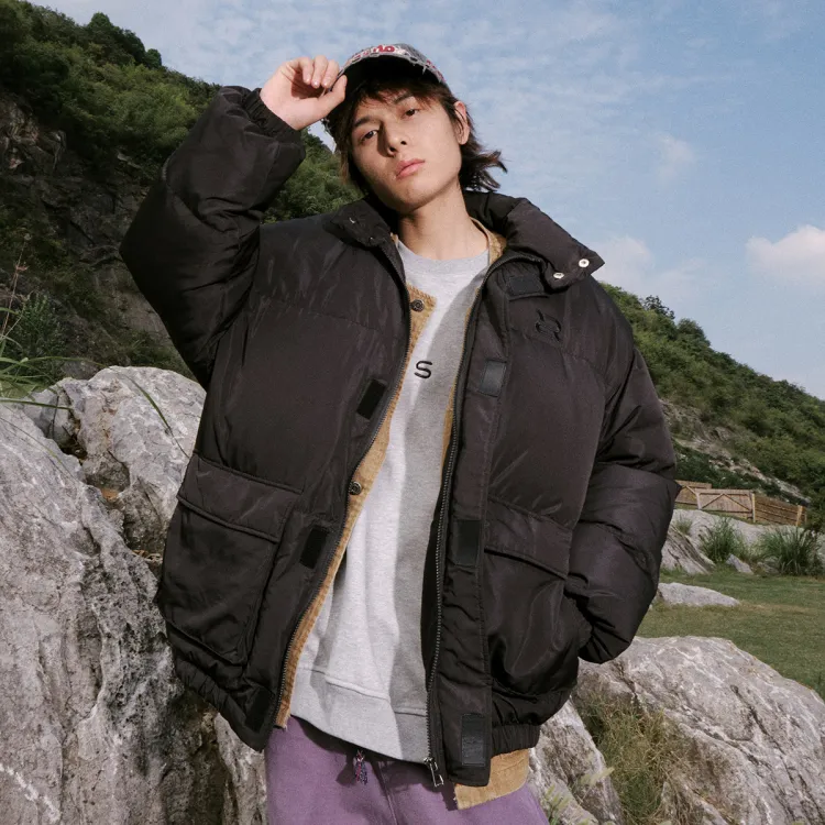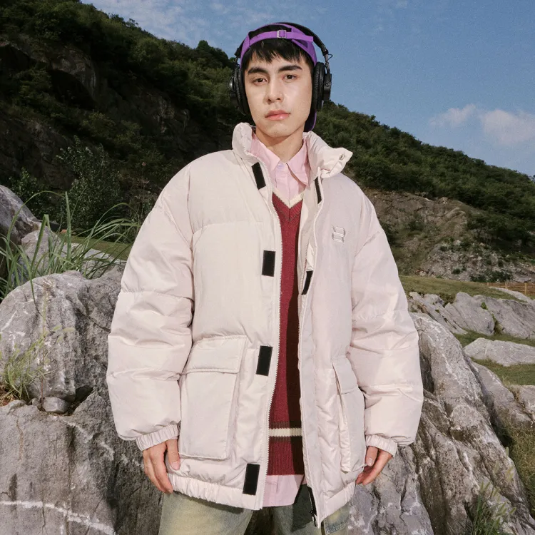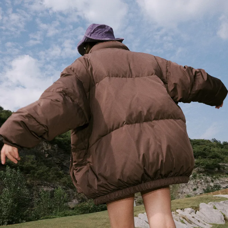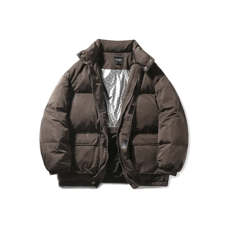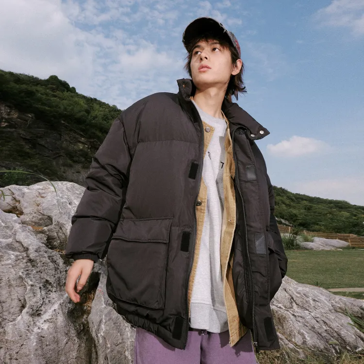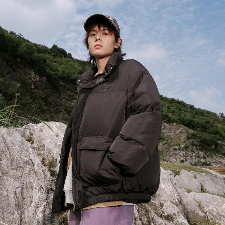 원단 1 (원단: 100% 폴리에스터, 안감: 100% 폴리에스터, 내피: 100% 폴리에스터, 다운 함량: 85%) 원단 2 (원단: 100% 폴리에스터, 안감: 100% 폴리에스터, 내피: 100% 폴리에스터, 다운 함량: 90%)