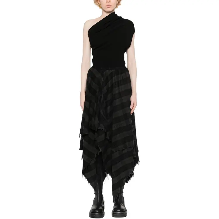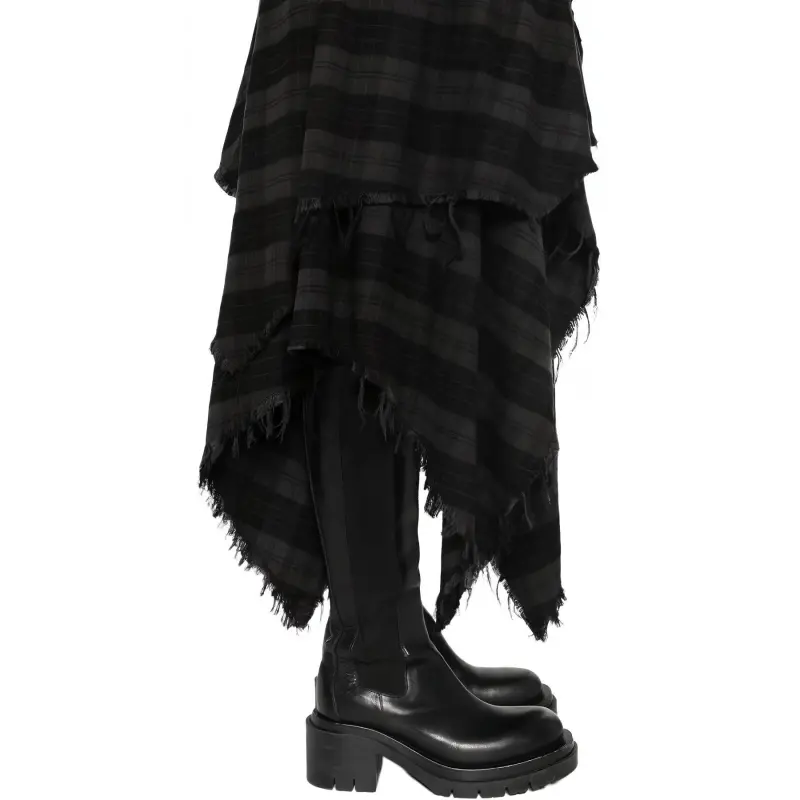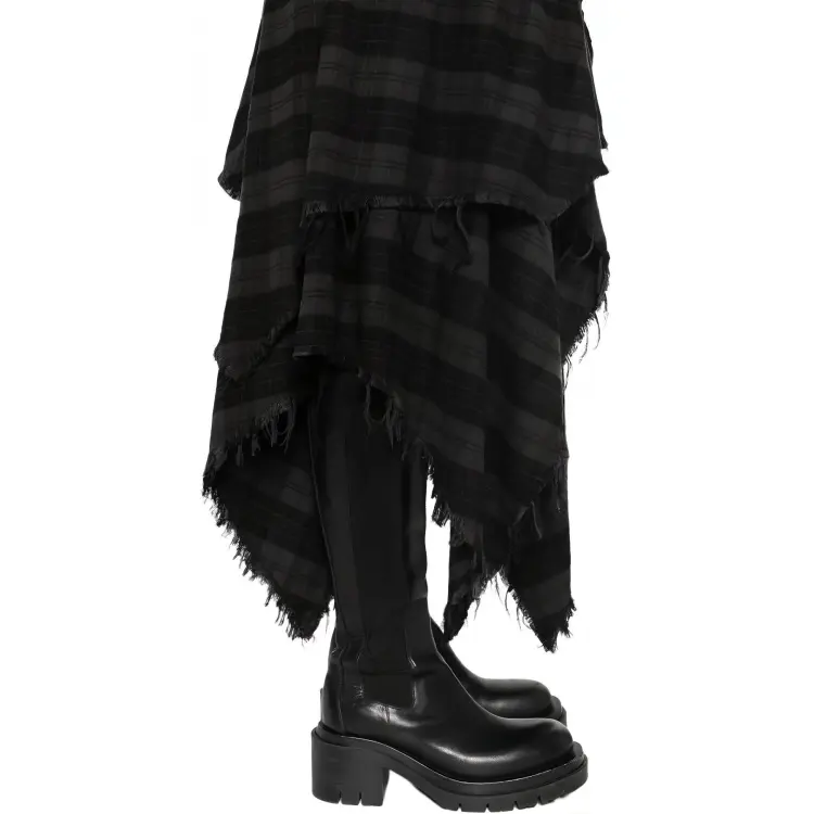(W) R13 미디 행커치프 스커트 오버다이드 블랙 플레이드 - POIZON