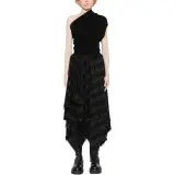 (W) R13 미디 행커치프 스커트 오버다이드 블랙 플레이드