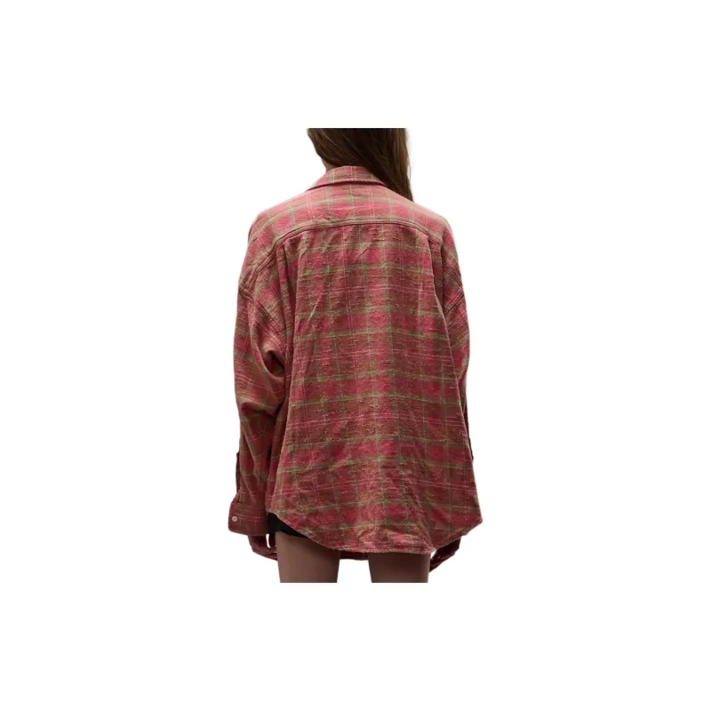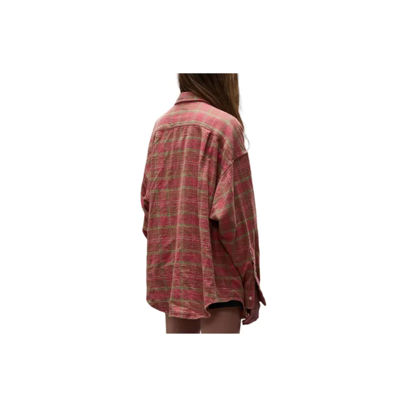 (W) R13 어시메트리컬 셔츠 핑크 플레이드 - POIZON