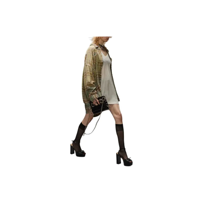(W) R13 드롭 넥 워크셔츠 그린 그라디언트 플레이드 - POIZON