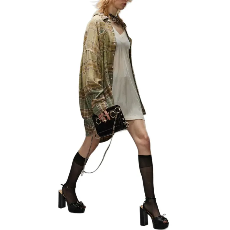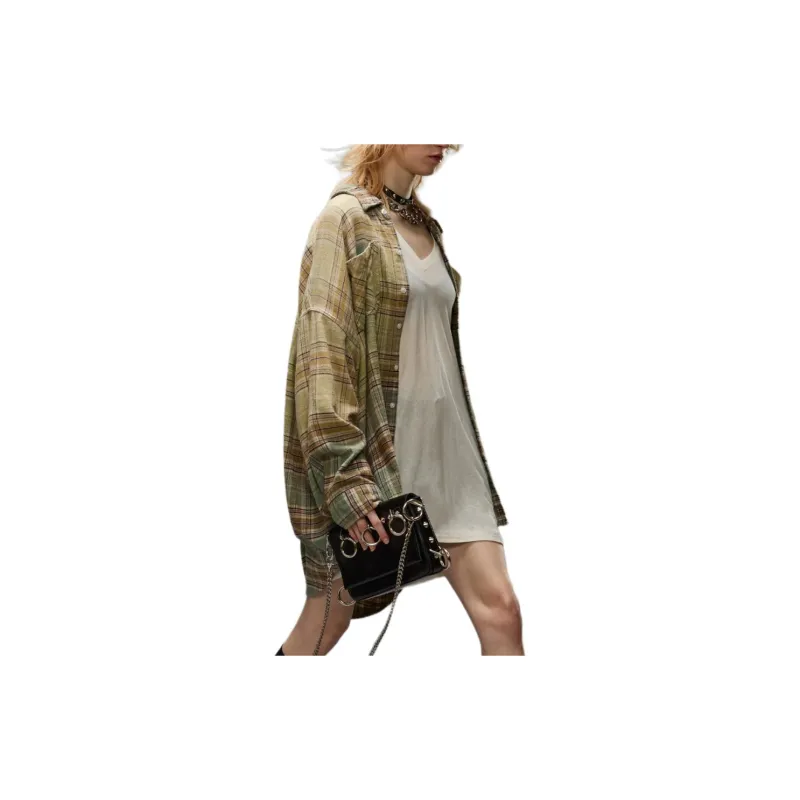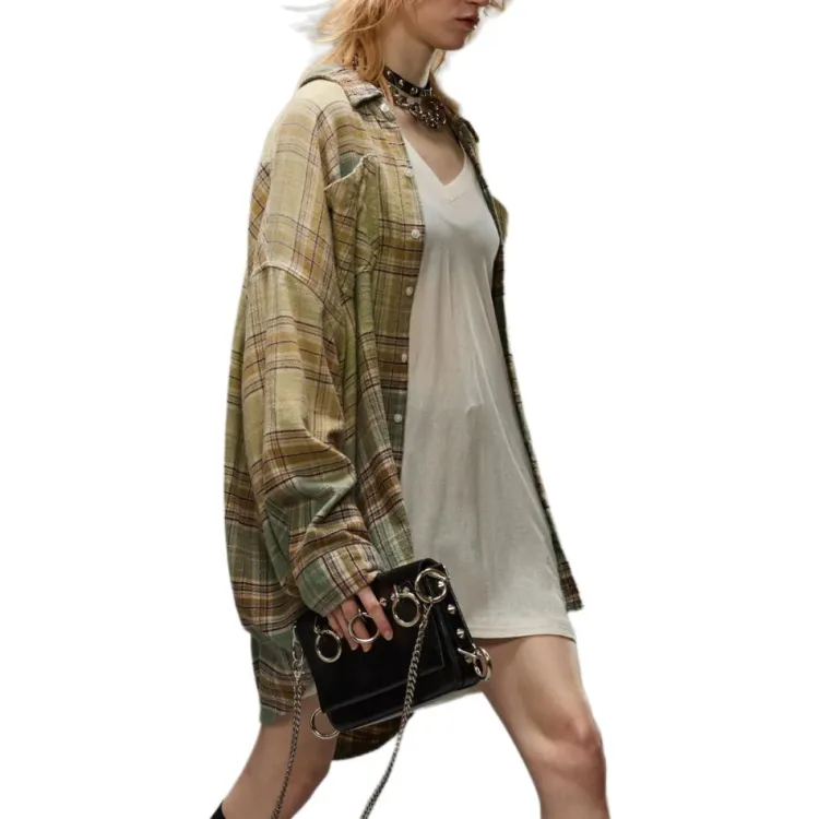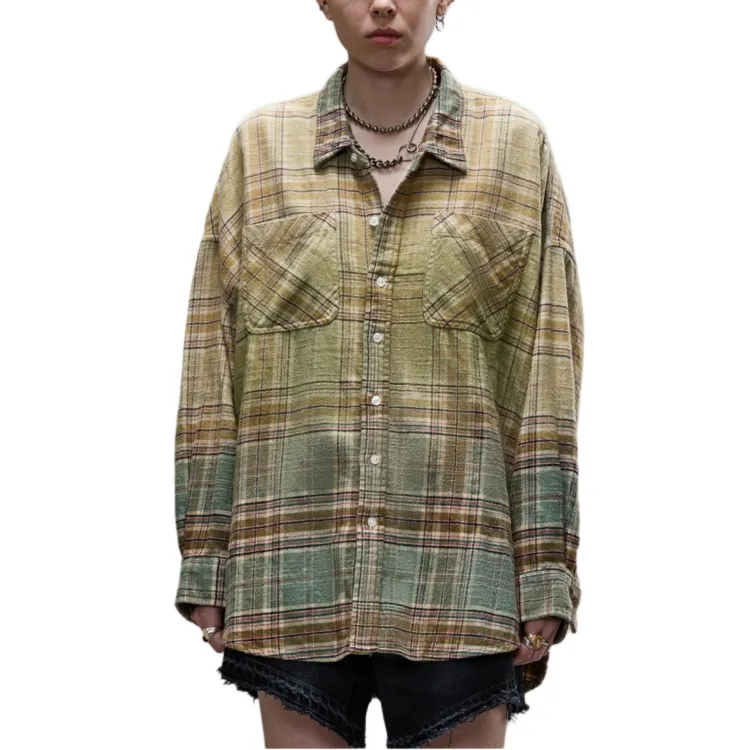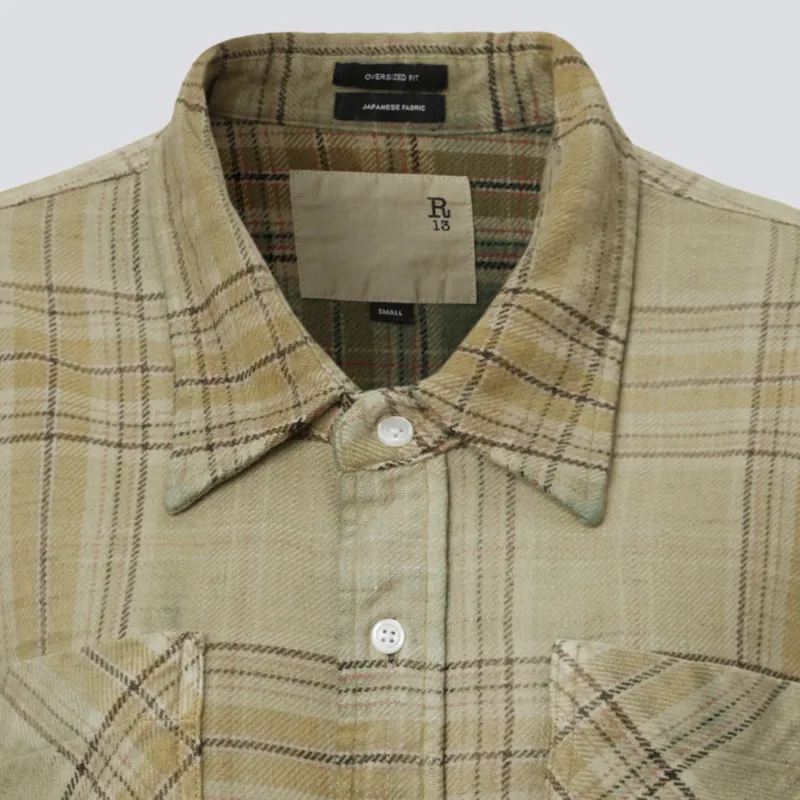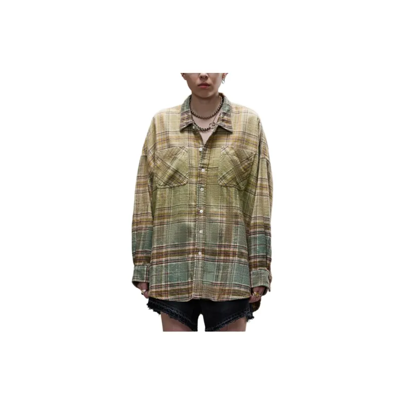 (W) R13 드롭 넥 워크셔츠 그린 그라디언트 플레이드