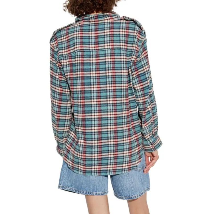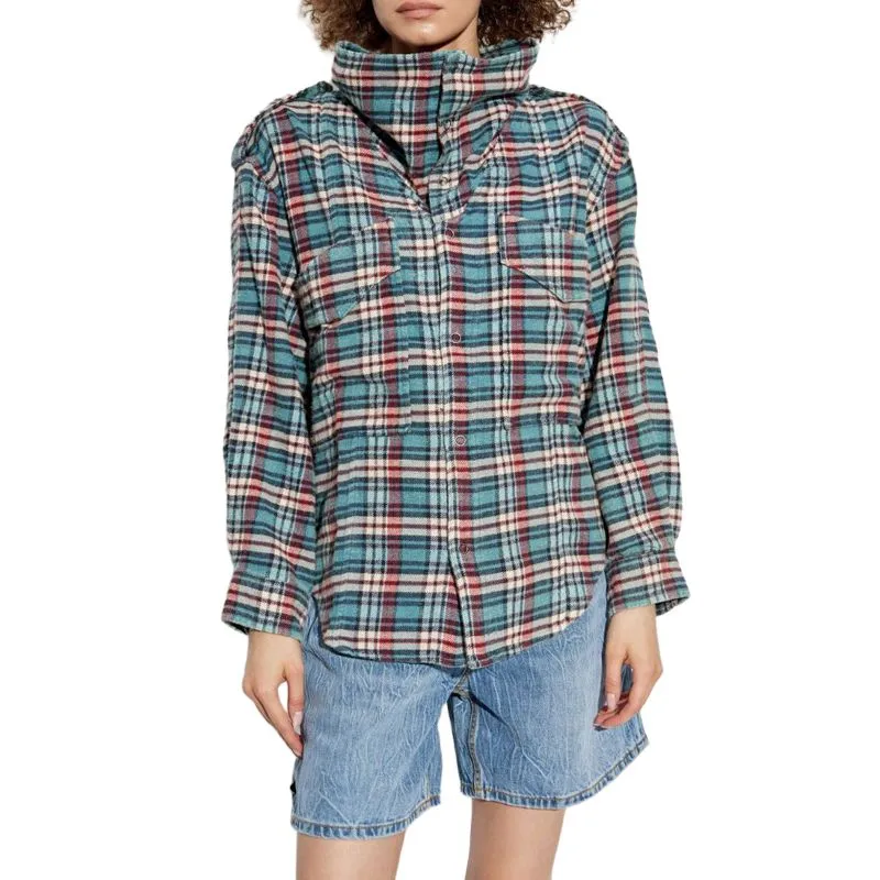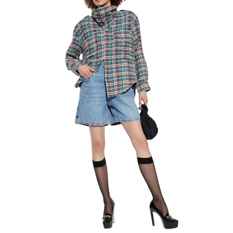 (W) R13 하이 넥 셔츠 블루 플레이드 - POIZON
