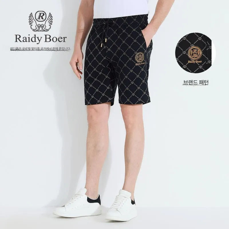 Raidy Boer 2025 여름 캐주얼 반바지 남성 블랙 플로럴 - POIZON
