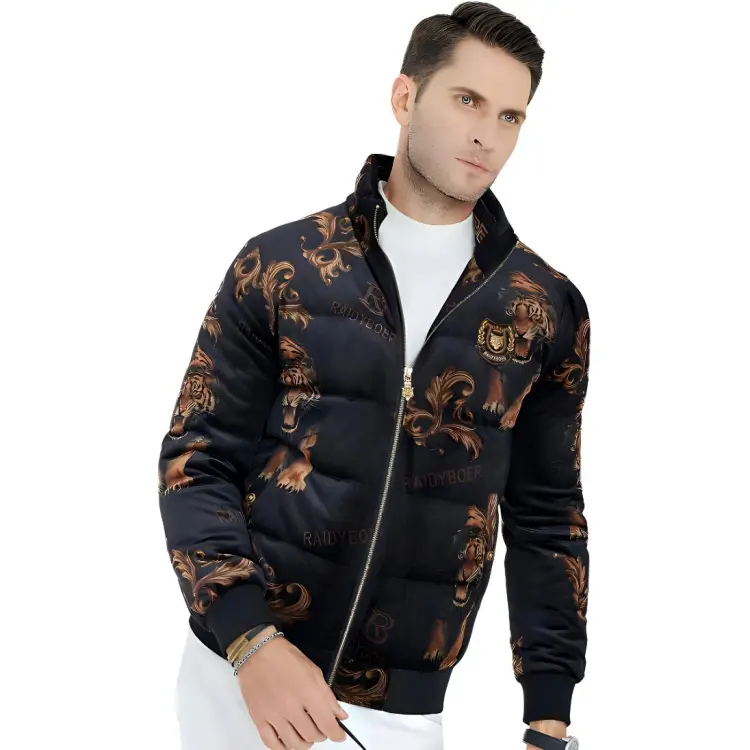 Raidy Boer 블랙 플로럴 남성 다운 재킷