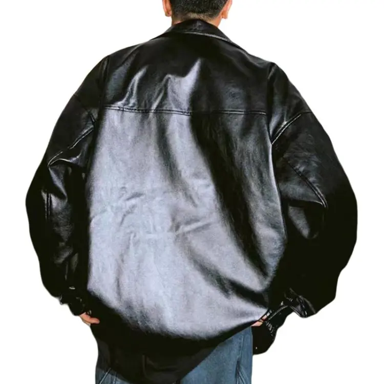 RAP PANDA 블랙 남녀공용 가죽 자켓