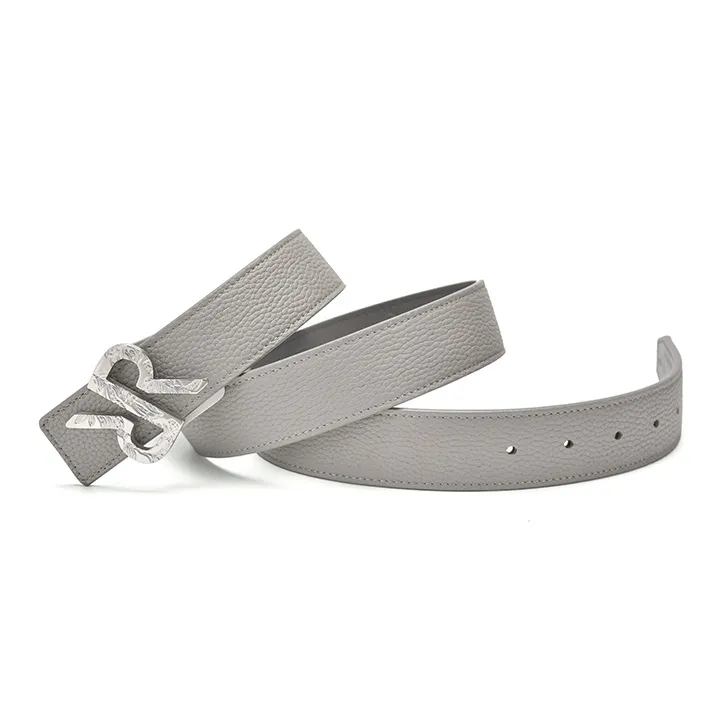 RARE 리치 패턴 RARE 도장 엠보싱 스타일 가죽 벨트 남성 라이트 그레이 넓이 3.4cm