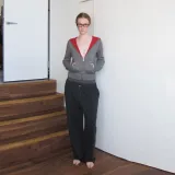 원단: 100% 순면, 골지: 95% 폴리아미드, 5% 스판덱스