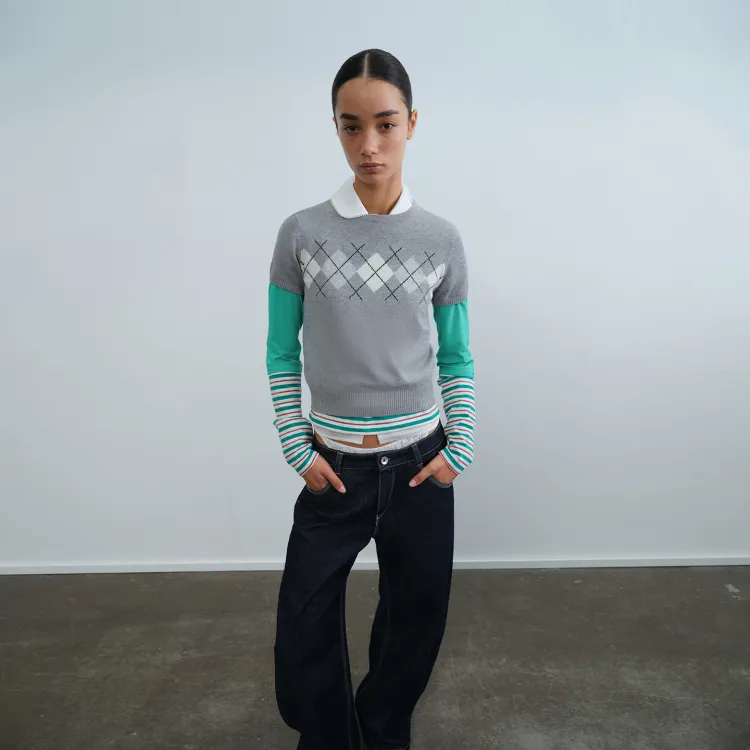 블루 그린 바닥층/아이보리 다이아몬드 패턴