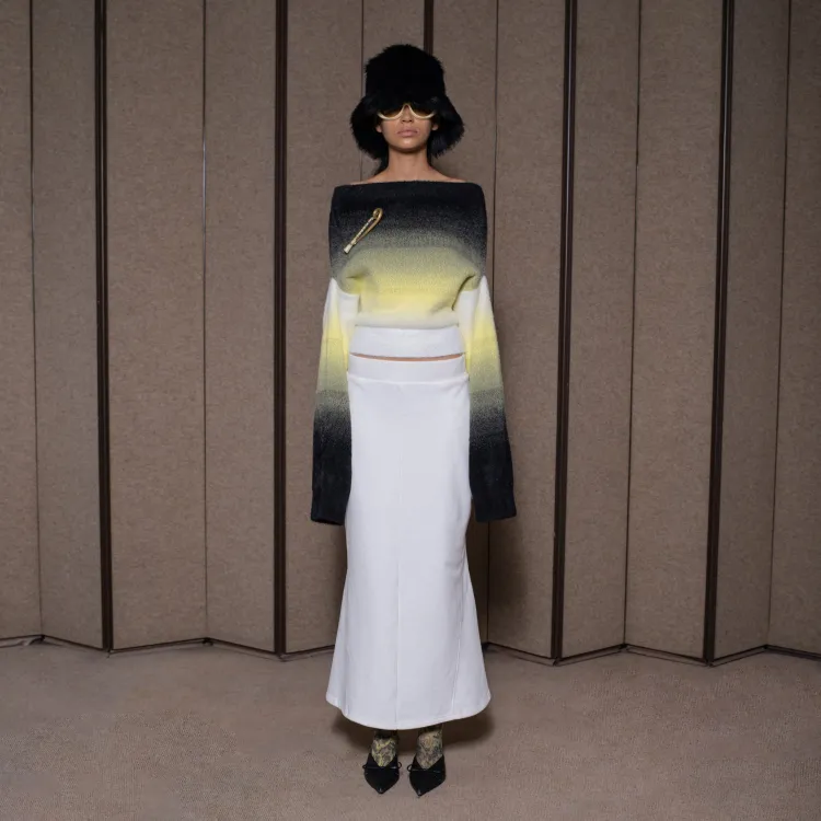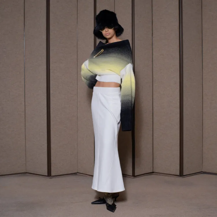 Rarely Alike 스웨터 여성 옐로우 블랙 그라데이션