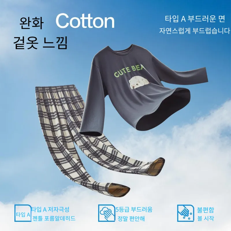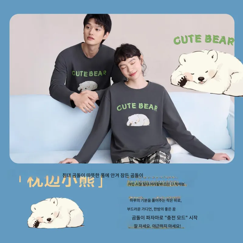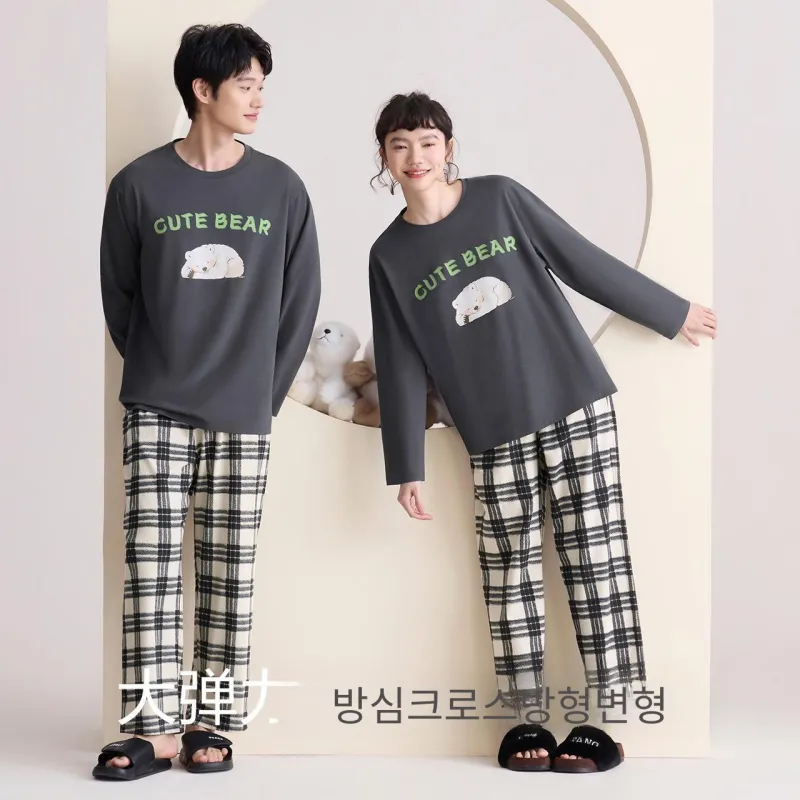 Red Beans at Home 파자마 세트 남성 다크그레이 - POIZON