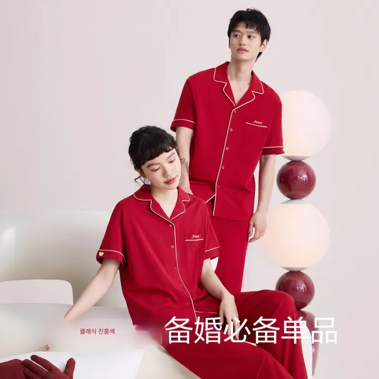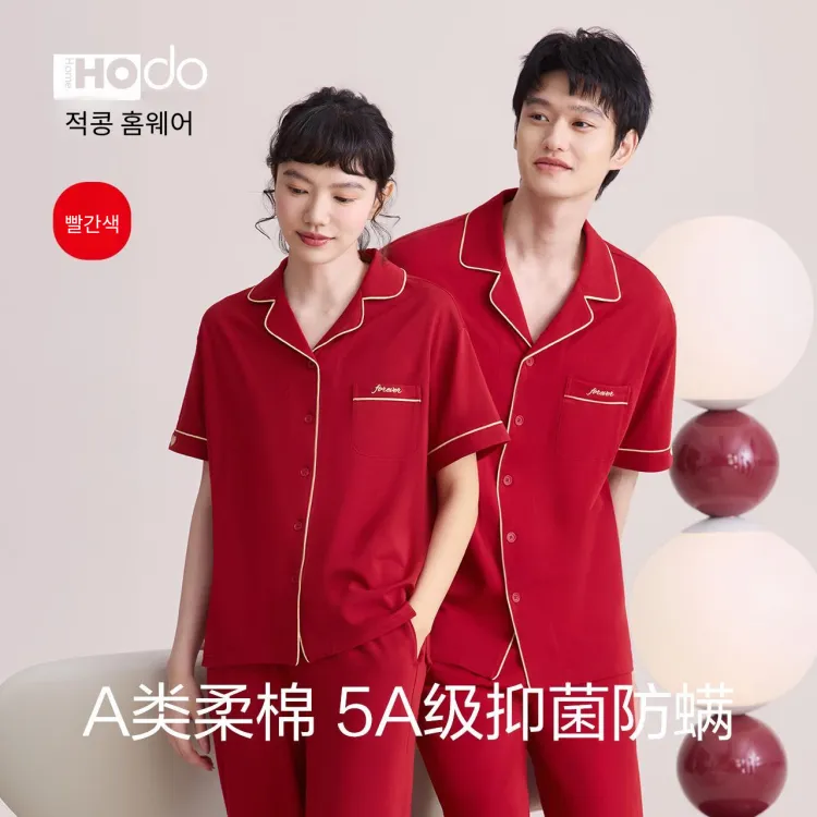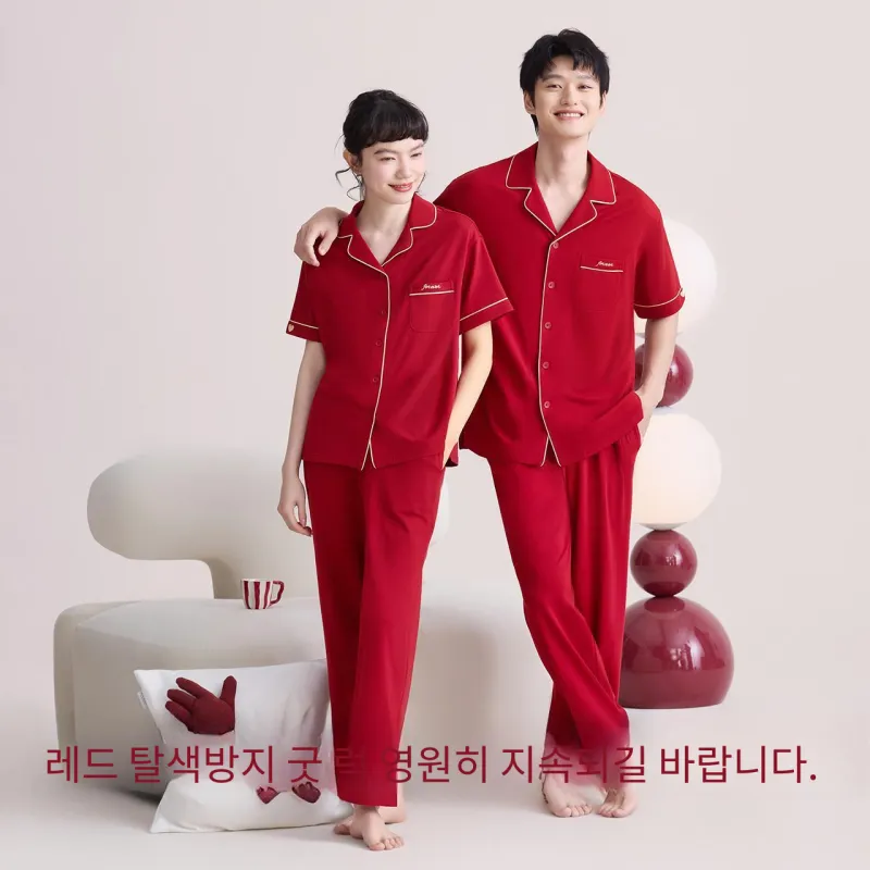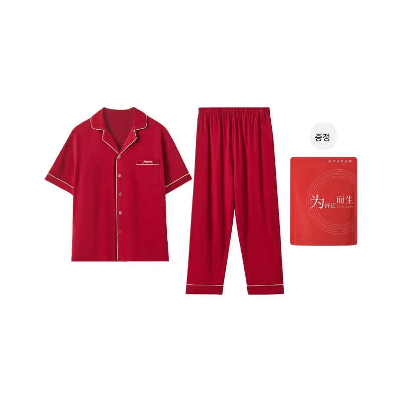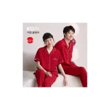 Red Beans at Home 파자마 세트 남성 쇼핑백 레드 - POIZON