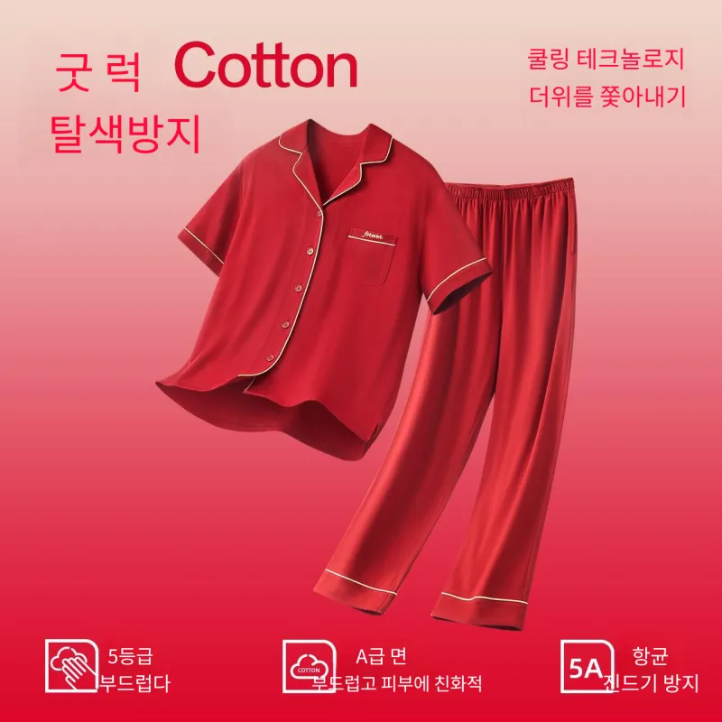 Red Beans At Home 파자마 세트 남성 쇼핑백 레드