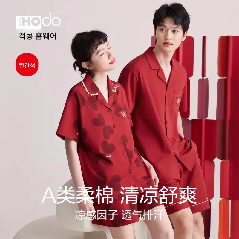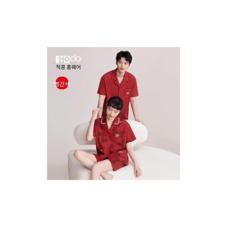 Red Beans at Home 레드 여성 패드 포함 여성 파자마 세트 - POIZON