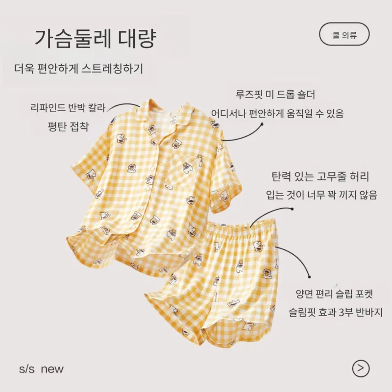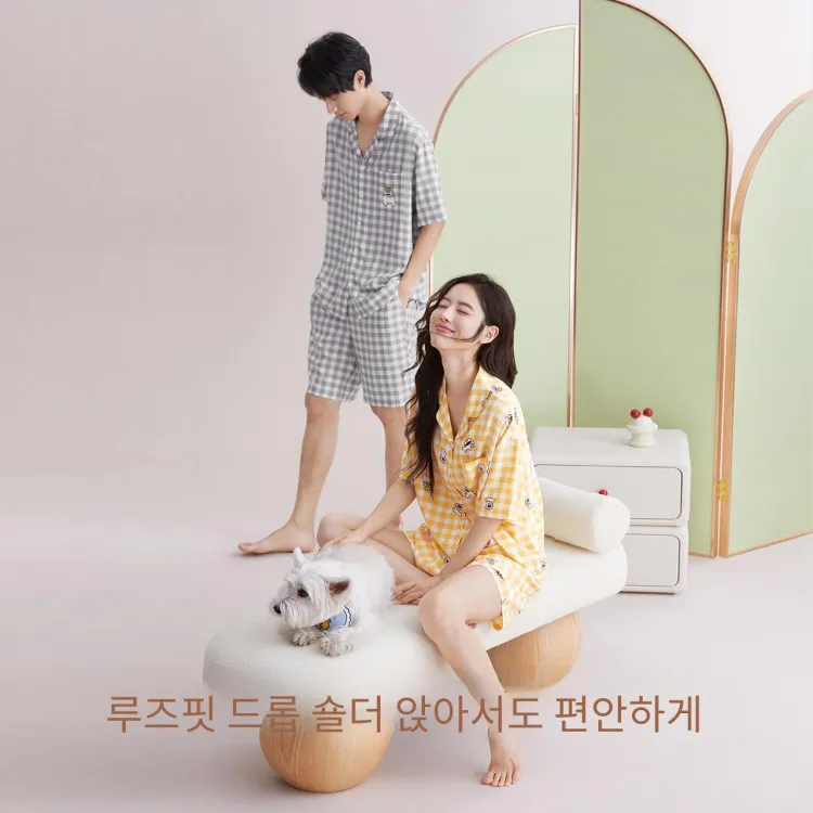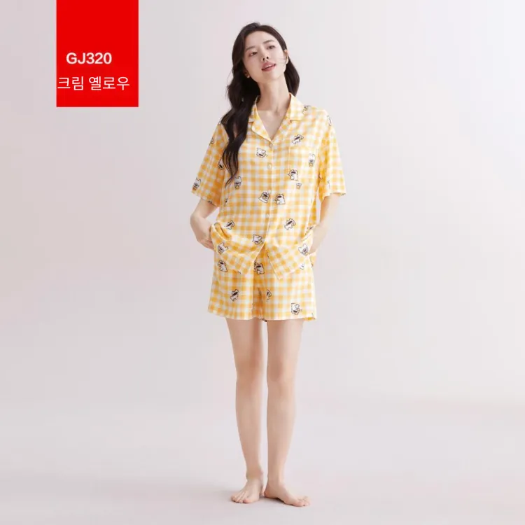 Red Beans at Home 크림 옐로우 여성 여성 파자마 세트 - POIZON