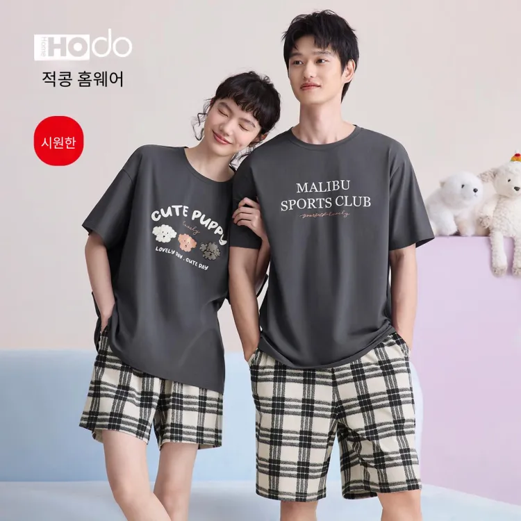 Red Beans at Home 파자마 세트 여성 다크그레이 - POIZON