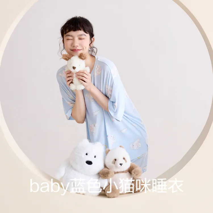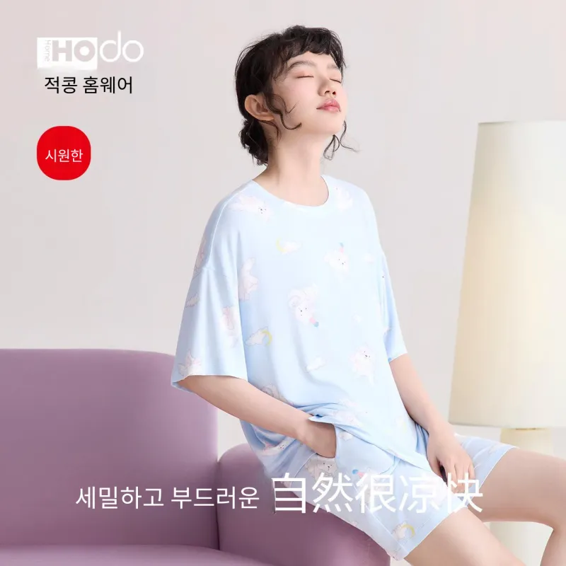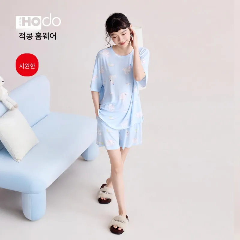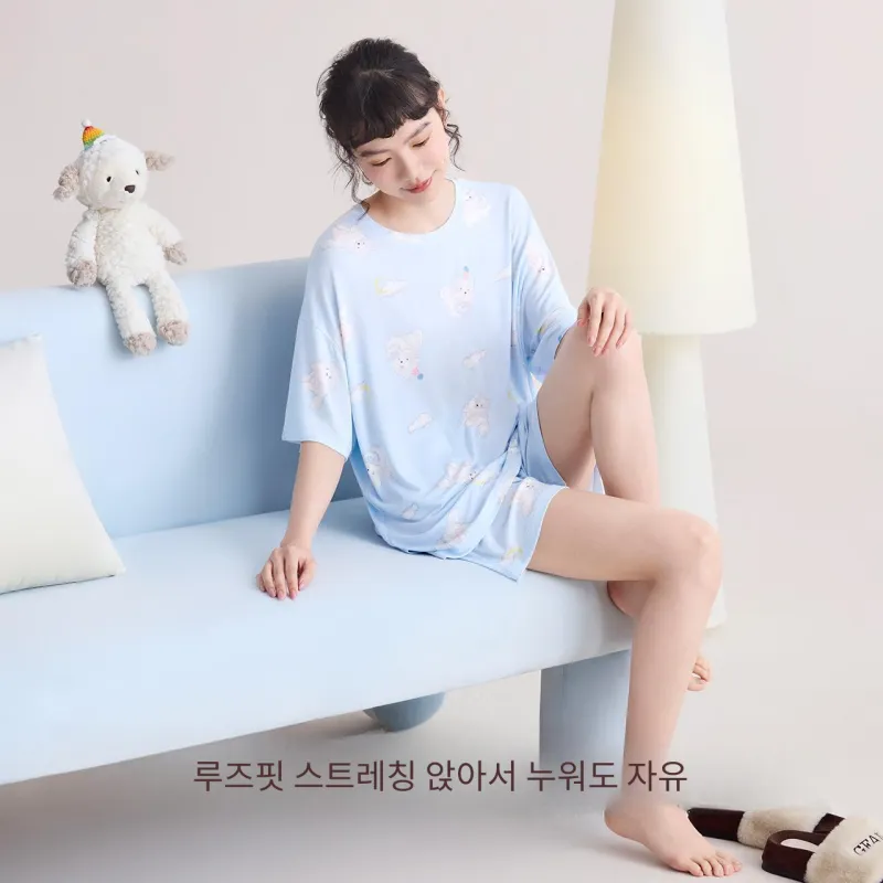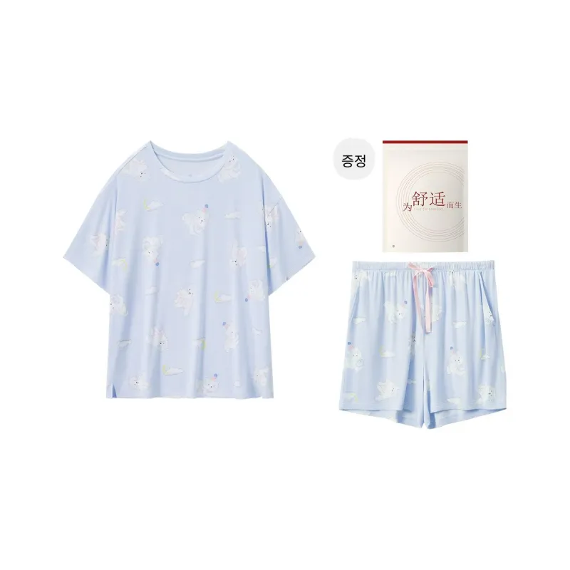 Red Beans at Home 파자마 세트 여성 선물 박스 세트 밀크 쉘 블루 - POIZON