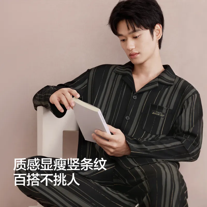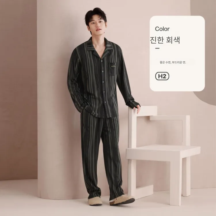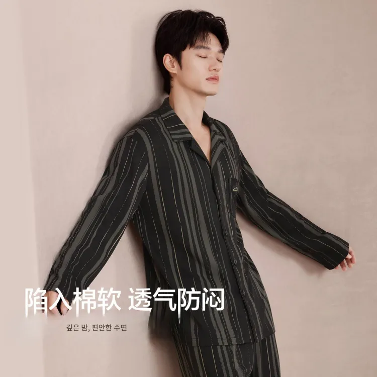 Red beans at home 다크그레이 남성 파자마 세트 - POIZON