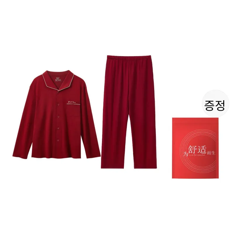 Red Beans At Home 레드 빈 레드 남성 남성 파자마 세트
