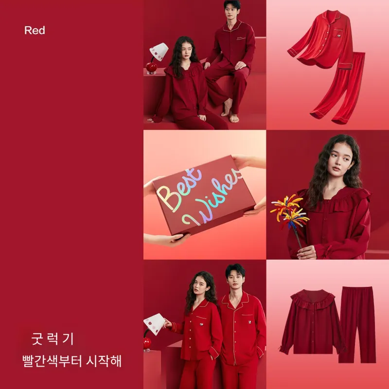 Red Beans at Home 레드 빈 레드 남성 남성 파자마 세트 - POIZON