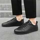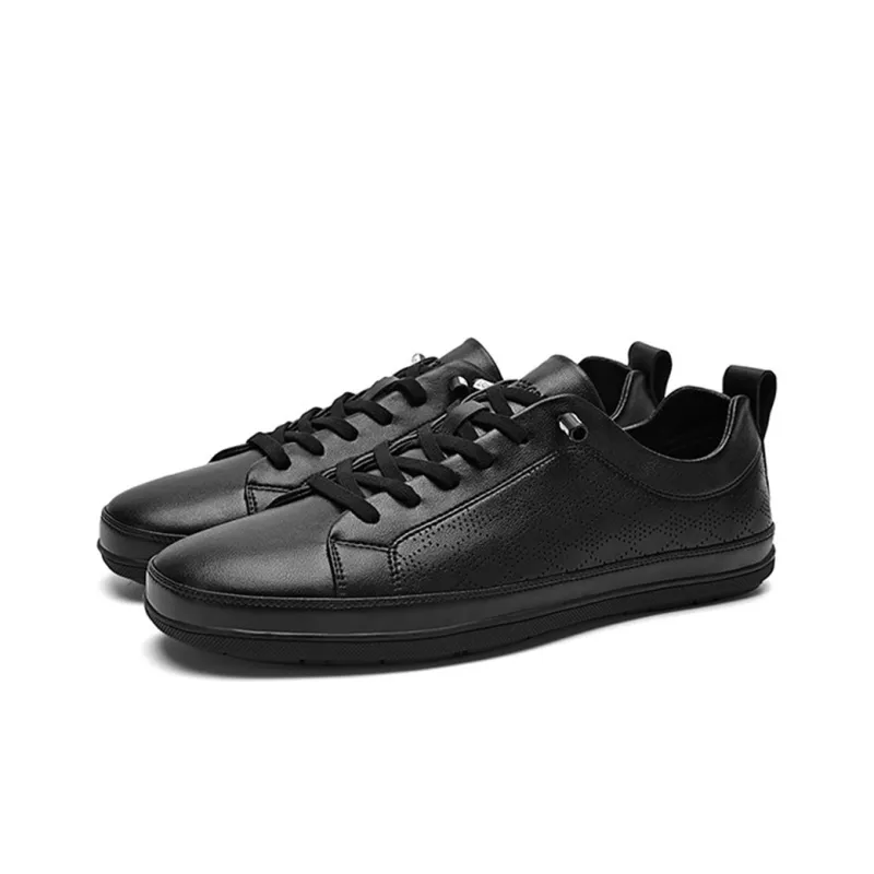 홍칭팅 가죽 신발, 스케이트보드화 미끄럼방지, 내마모성, 방수, 통기성이 좋은 가벼움 로우탑 캐주얼화 남성 그레이/올 블랙 - POIZON