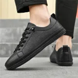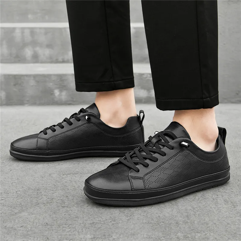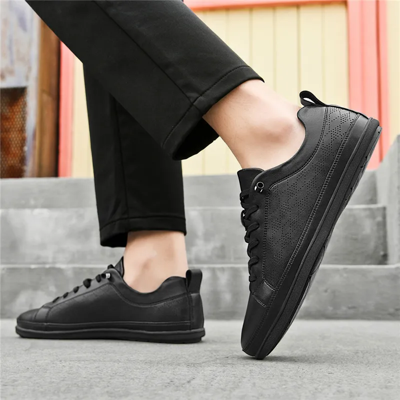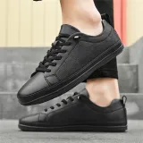 홍칭팅 가죽 신발, 스케이트보드화 미끄럼방지, 내마모성, 방수, 통기성이 좋은 가벼움 로우탑 캐주얼화 남성 그레이/올 블랙